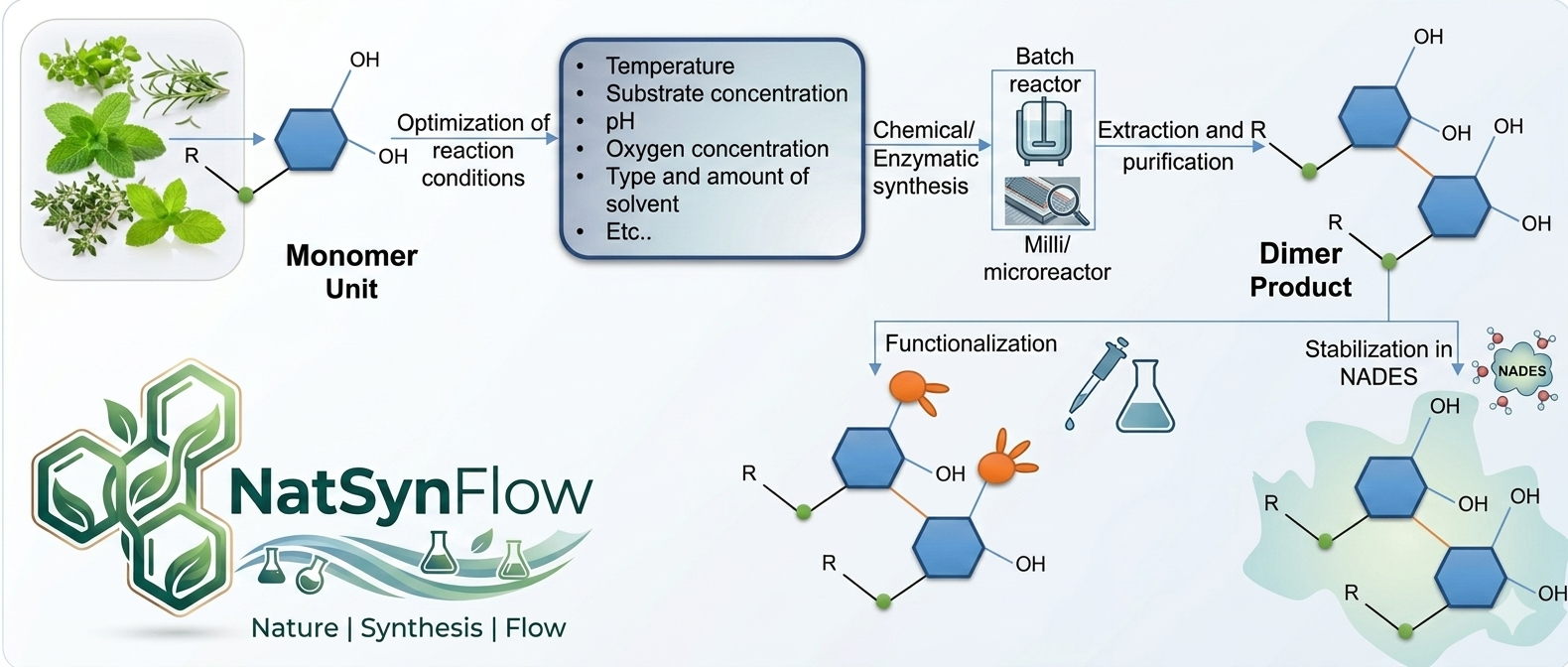 Ultimately, this project aims to establish a versatile and sustainable platform for producing natural product dimers with improved pharmacological properties. By combining biocatalysis with microreaction technology and process modelling, the proposed research will contribute to the development of next-generation bioactive compounds with potential applications in the pharmaceutical, food, and cosmetic industries, supporting the advancement of personalised and environmentally responsible therapies.